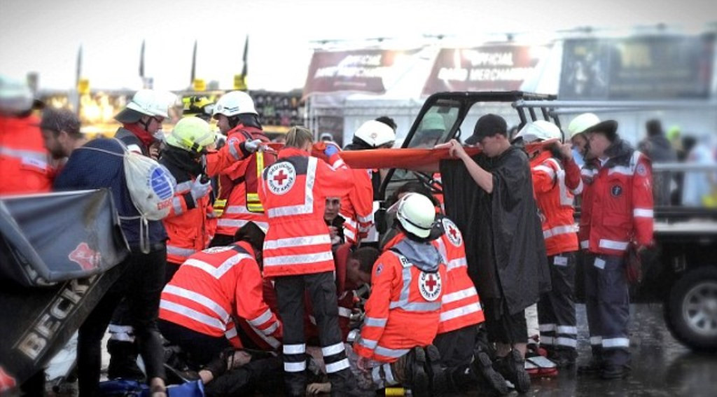 Lực lượng cứu hộ sơ cứu một người đàn ông bị sét đánh tại Đại nhạc hội Rock am Ring.