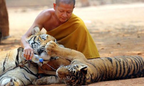 Theo Guardian, một tuần trước, chỉ cần bỏ ra 600 baht Thái (gần 17 USD) là một du khách có thể tới thăm ngôi đền chuyên nuôi hổ tại tỉnh Kanchanaburi, phía tây thủ đô Bangkok của Thái Lan. Tại đây, du khách được chiêm ngưỡng cảnh tượng tuyệt vời khi những con hổ sống chung với người một cách gần gũi. Chỉ cần chi thêm khoảng gần 22 USD họ sẽ được tham gia cho hổ ăn, hoặc chụp ảnh với một chú hổ ngả đầu vào lòng.