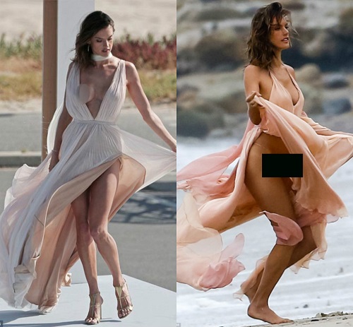 Thiên thần nội y bị gió lùa tung váy lộ nội y nóng bỏng trên biển