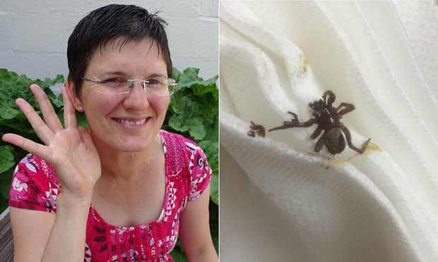 Bà Victoria Price và con nhện tìm thấy trong lỗ tai.
