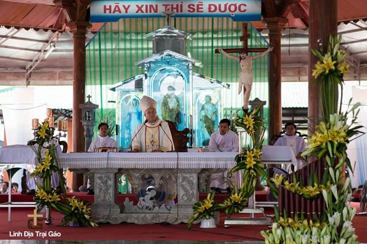 Trước sự hiện diện của hàng chục linh mục, và trên 5 vạn giáo dân và lương dân, Đức Giám Mục Phaolô Nguyễn Thái Hợp cai quản giáo phận Vinh đã có bài chia sẻ sâu sắc. Ngài dựa trên câu chuyện xung quanh bàn ăn để nói về thảm họa môi trường, về sự thê thảm của “mâm cơm” văn hóa, giáo dục, kinh tế… ở Việt Nam, và chỉ rõ ra nguyên nhân thảm họa môi trường là xuất phát từ Trung Cộng.