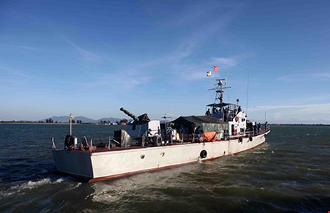 Tàu HQ211 rời cầu cảng Hải đội 2 (Bộ đội Biên phòng tỉnh Nghệ An) tham gia tìm kiếm máy bay gặp nạn.