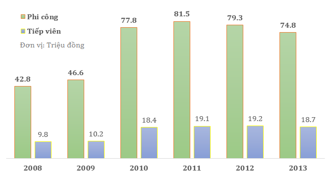 Thu nhập bình quân cơ quan văn phòng thuộc tập đoàn còn cao gấp hơn 2 lần thu nhập bình quân chung của công ty mẹ (gần 30 triệu đồng/tháng).