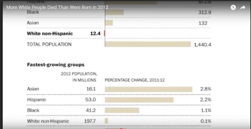 Tính đến thời điểm hiện tại,số dân da trắng tại Hoa Kỳ đã giảm đi đáng kể do tỷ lệ sinh sản của người Mỹ da trắng ngày càng giảm.Trong khi đó người Latino, châu Á và da đen đang vượt qua tốc độ tăng trưởng.