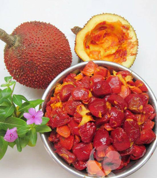 Quả gấc rất giàu vitamin A. Đĩa xôi gấc ngày giỗ Tết thật đẹp và trang trọng. Chúng ta có thể làm dầu gấc để trị mụn, nám ngay tại nhà mình.