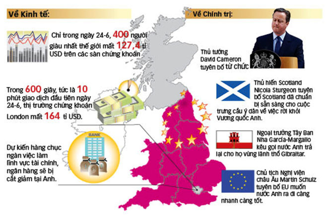 Kết quả bỏ phiếu ngày 23-6 cho thấy, 51,89% người dân đồng ý nước Anh ra đi, tương đương 17.410.742 cử tri nhưng chỉ chiếm 72% cử tri đủ điều kiện bỏ phiếu trên toàn vương quốc.