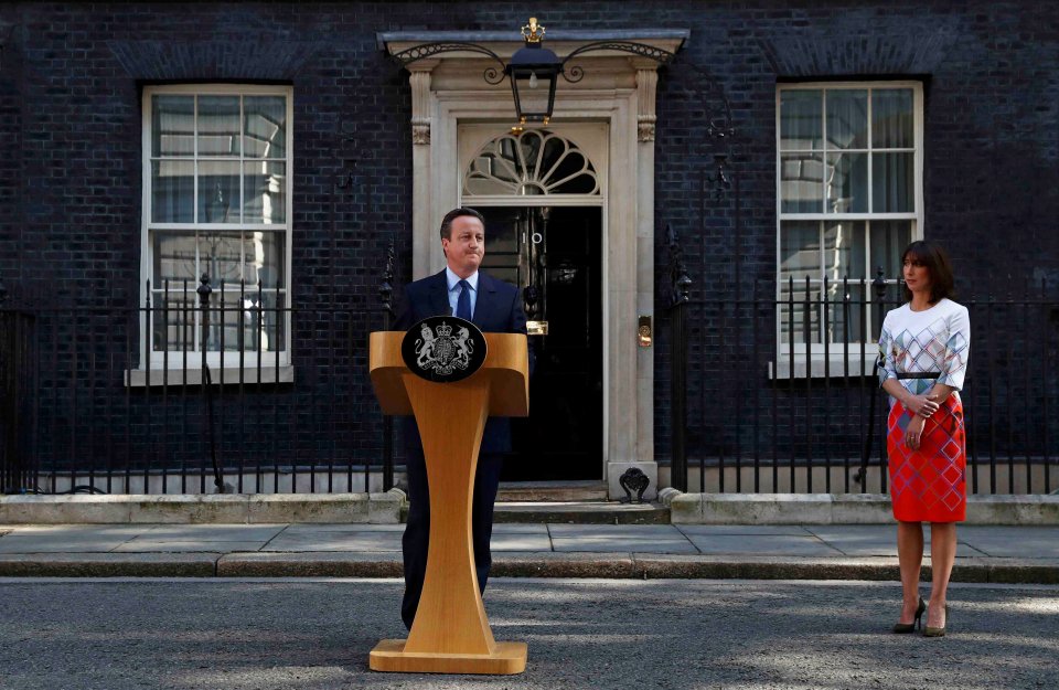 Sau khi ông Cameron nghẹn ngào kết thúc phát biểu của mình, ông nắm lấy tay vợ mình và hai người nhanh chóng đi nhanh vào cánh cửa của Số 10 phố Downing.