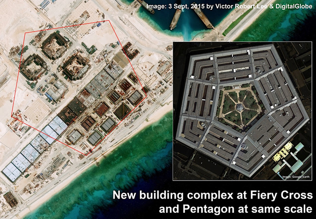 Các công trình quân sự kiên cố do Trung Quốc ồ ạt xây dựng trên Đá Chữ Thập được giới nghiên cứu Mỹ so sánh với Lầu Năm Góc