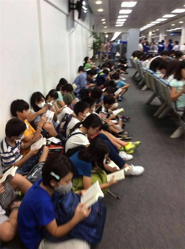 Theo thông tin từ một tài khoản trên MXH cho hay, sự việc diễn ra vào chiều ngày 25/6 tại một sân bay ở Thái Lan. Trong lúc chờ đến giờ bay, nhóm học sinh Nhật đã cùng nhau lấy sách ra đọc, mà không tập trung sử dụng smartphone như những người bạn cùng trang lứa khác. Quá thích thú, anh đã nhanh tay chụp lại những khoảnh khắc hiếm thấy này rồi chia sẻ với mọi người.