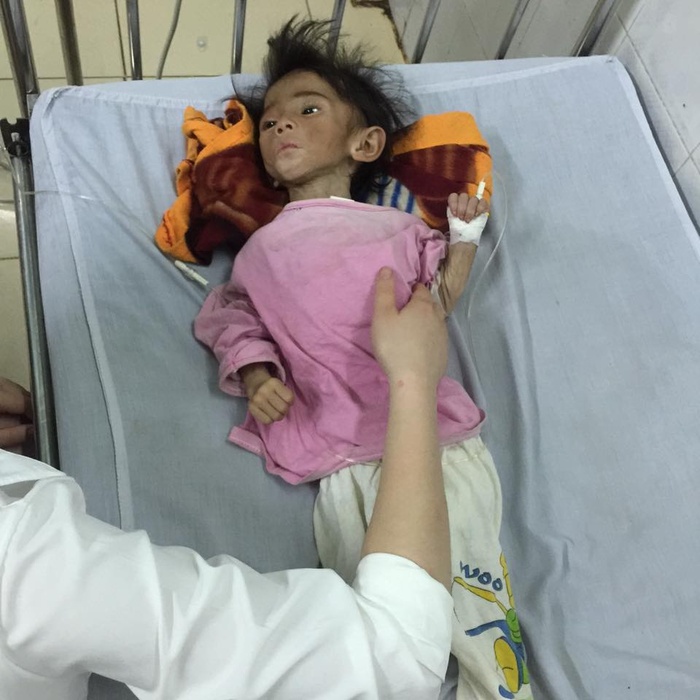 Bé gái khi sinh ra thì mẹ em mất tích. Bố em cho em uống nước lã và sang thì là…nước cơm. Em suy dinh dưỡng nặng. Ai nhìn cũng thấy đau đớn.