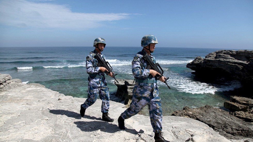 Binh sĩ Trung Quốc tuần tra trái phép trên một đảo ở Biển Đông