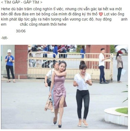Tài khoản Đức Ngọc đăng: “Bạn nào truy tìm giúp mình cô bé đưa em gái đi làm thủ tục tại địa điểm Đại học Vinh sáng 30/6 với. Xin cảm ơn và hậu tạ”.