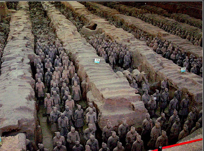 Hoàng đế Tần Thủy Hoàng hay Tần Doanh Chính (259-210 trước Công nguyên) lên ngôi Tần vương năm 13 tuổi và giành quyền kiểm soát triều chính vào năm 22 tuổi. Năm 221 trước Công nguyên, Tần vương thôn tính 6 nước gồm Sở, Chu, Yên, Hàn, Triệu, Ngụy và lần đầu tiên thống nhất Trung Quốc. Đây làvị hoàng đế đầu tiên trong lịch sử Trung Quốc. Ngay sau khi lên ngôi Tần vương lúc mới 13 tuổi, Tần Doanh Chính đã huy động 700.000 tù nhân để xây lăng mộ cho mình để đảm bảo sau này được yên giấc ngàn thu. Công trình được xây dựng ròng rã suốt 38 năm.