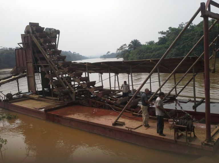 Một trong 4 tàu nạo vét của Công ty Kun Hou trên sông Ulindi. Mỗi tàu có thể khai thác được từ 10-20kg vàng/tháng.