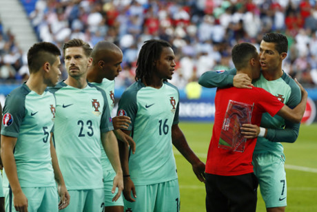 Một fan cuồng trước khi trận đấu bắt đầu đã đến gần Ronaldo để có thể chụp hình chung. Không chỉ vậy cậu này còn ôm trầm Ronaldo vào người, và ai ngờ rằng đó là điều may mắn đem đến cho trận Bồ Đào Nha thắng vào chung kết. Cùng vietbf.com khám phá thêm.