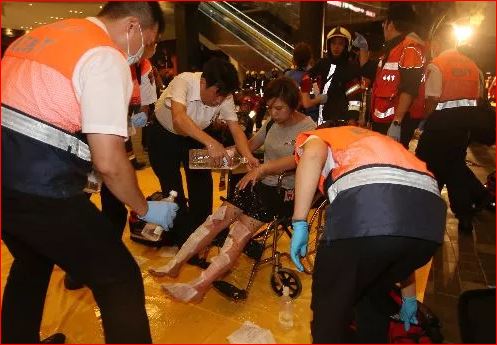Một người bị thương trong vụ nổ. Ảnh: Apple Daily