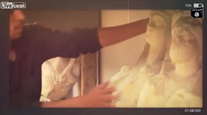 Ở đầu video, chúng ném tượng xuống đất rồi bắt đầu đập phá. Thậm chí, một số xác ướp có giá trị lịch sử hàng ngàn năm tuổi cũng bị chúng mang xe bọc thép ra cán nát.