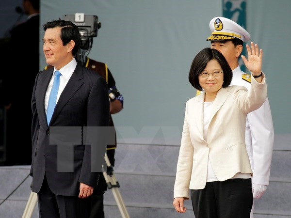 Nhà lãnh đạo mới của Đài Loan Thái Anh Văn (phải) và người tiền nhiệm Mã Anh Cửu tại Phủ tổng thống ở Đài Bắc ngày 20/5. (Nguồn: EPA/TTXVN)