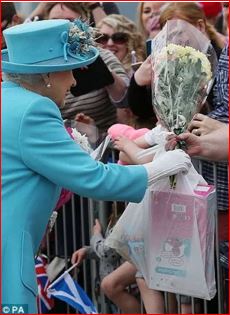 Vậy nhưng, trong lần ghé thăm Dundee, Scotland mới đây, Nữ hoàng đã nhận được một món quà vô cùng đặc biệt. Đó là một chiếc túi ni lông đựng những món đồ chơi cho trẻ con. Túi quà này được gửi tới tay Nữ hoàng với mong muốn bà sẽ mang về cho Hoàng tử George cùng Công chúa Charlotte.