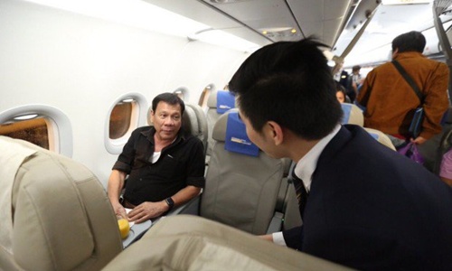 Theo Inquirer, trên chuyến bay mang số hiệu PR 1825 thuộc hãng hàng không Philippines Airlines khởi hành từ Manila lúc 21h, ông Duterte đã chọn ngồi ghế hạng phổ thông.