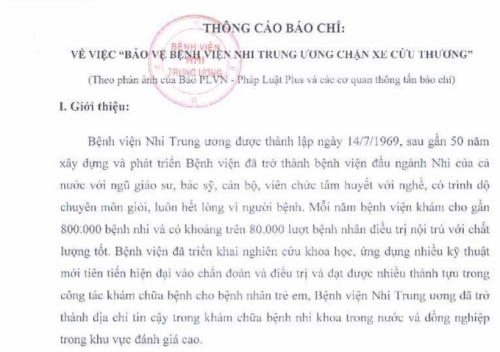 Bệnh viện Nhi Trung ương mới đây đã phát đi Thông cáo báo chí về việc “Bảo vệ Bệnh viện Nhi Trung ương chặn xe cứu thương” trong đó có nội dung phía bệnh viện này ký hợp đồng với hãng taxi ABC được dư luận quan tâm.