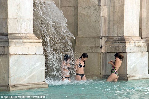 Được biết, nhiệt độ tại Italia đạt mức 32 độ C vào cuối tuần qua. Thế nhưng người dân địa phương cho rằng thời tiết nóng bức không thể là nguyên nhân khiến các cô gái có thể thoải mái mặc bikini và nhảy vào hồ phun nước để tắm như vậy, đặc biệt đây lại là một di tích lịch sử thu hút rất nhiều khách du lịch đến tham quan.