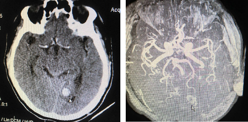 Nam bệnh nhân được đưa vào cấp cứu tại Bệnh viện Trưng Vương sau khi ngã khoảng 2 giờ. Kết quả chụp CT Scan cho thấy bệnh nhân xuất huyết dưới nhện hai bán cầu đại não và khối tăng đậm độ bằng máu nhu mô não vùng chẩm trái bờ đều nghi xuất huyết, u hoặc phình động mạch não. Chụp CT có tương phản, các bác sĩ phát hiện khối này tăng quang. Chụp MRI tương phản cho thấy rất nhiều tổn thương trên não.