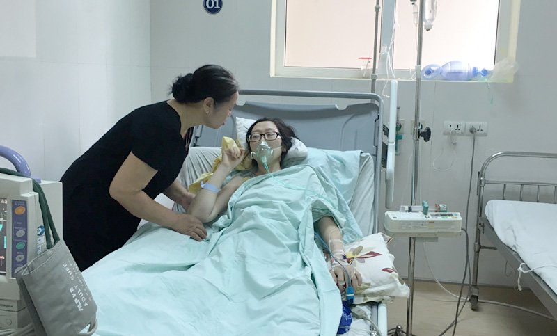 Trong suốt quãng thời gian trước và sau khi nhập viện, do khó thở nên chị Trang không thể nằm mà phải ngồi suốt 24/24 trong gần 1 tháng, mỗi ngày hầu như chỉ ngủ chập chờn được gần 2 tiếng.
