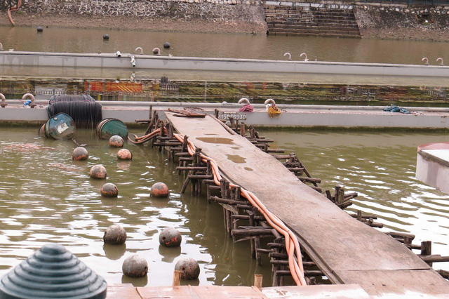 Được biết, thiết bị của dàn nhạc nước được nhà thầu nhập khẩu từ Mỹ về qua đường hàng không, đã được các cơ quan có thẩm quyền kiểm định. Tuy nhiên, theo quan sát của phóng viên Dân trí, hiện các đường ống dẫn đã có dấu hiệu hoen gỉ. Hệ thống phun nước và hiệu ứng ánh sáng, dây điện lòng thòng, giá đỡ đèn xập xệ, mất an toàn. Những chiếc cầu nối giữa nhà điều khiển với dàn nhạc nước được làm tạm bợ bằng tre xiêu vẹo, nhếch nhác.