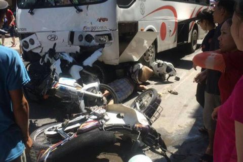 Một số người dân cho hay, chiếc xe khách đang xuống dốc thì bất ngờ lao thẳng vào dòng phương tiện. Hậu quả, 4 xe máy bị cuốn vào gầm ô tô, nhiều người bị xe đâm văng ra đường, một người bị cuốn vào gầm xe.