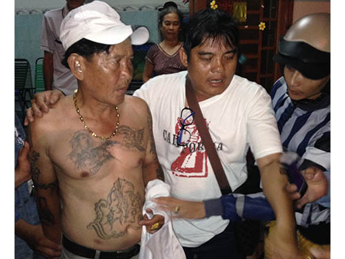Lê Duy Khánh (bìa trái) bị các “hiệp sĩ” đưa về Công an phường Phú Lợi, TP Thủ Dầu Một, tỉnh Bình Dương/