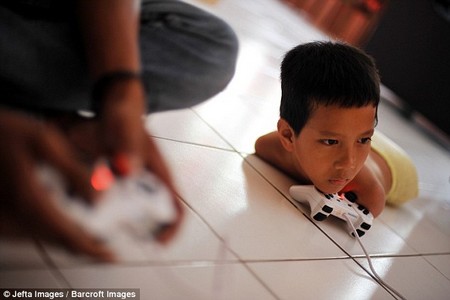 Chúng ta phải thấy mình còn hạnh phúc hơn rất nhiều người khác. Không tay và không chân, cậu bé này có nghị lực thật phi thường. Sinh ra mà không có cả hai tay lẫn hai chân, một cậu bé 11 tuổi người Indonesia vẫn không đầu hàng số phận vẫn thực hiện được mọi thứ như những cậu bé bình thường khác, bao gồm cả việc chơi game trên máy điện tử.