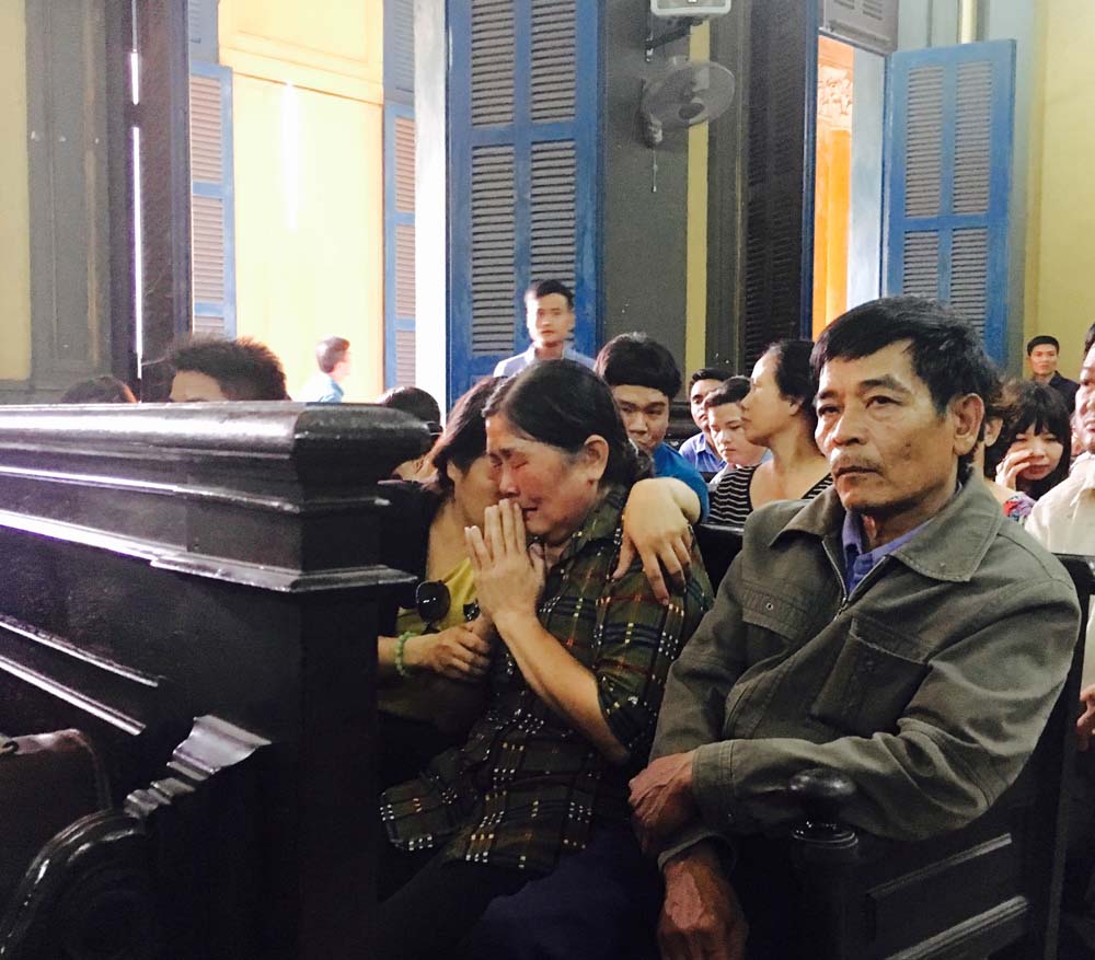 Phía bên hàng ghế dành cho người nhà bị cáo, bà Thi cùng con gái chắp tay khấn cầu liên tục. Gương mặt người mẹ xẹp đi để yên cho những hàng nước mắt trào ra. Phút giây nghe con mình bị án tử hình, bà run rẩy, bám lấy tay của người thân mà lê từng bước ra khỏi phòng xử án. Tới cổng toà án, bà gục hẳn xuống, dựa vào góc đường mà oà lên nức nở.