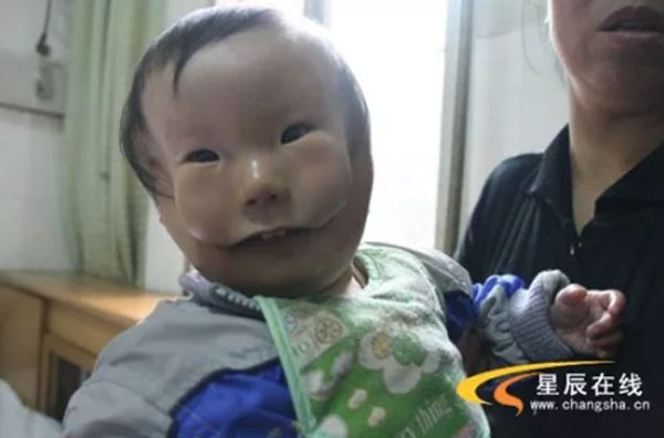 Một người mẹ ở Hồ Nam, Trung Quốc trong suốt quá trình mang thai đều không phát hiện ra điều gì cho đến khi đứa trẻ được sinh ra. Được biết, đứa trẻ bị mắc chứng rối loạn thần kinh hiếm gặp khiến mặt bé bị dị tật, gặp các vấn đề về sức khỏe khác.