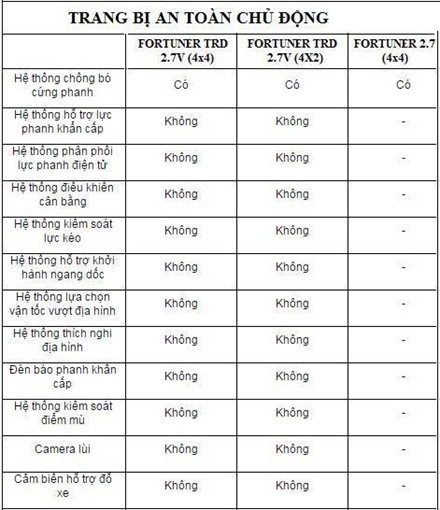 Các trang bị an toàn trên xe Fortuner.