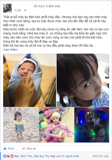 "Thật ra bố mày ko định bóc phốt mày đâu. Nhưng mà dạo này tao nhịn mày như nhịn cơm sống, tao ko chịu được nữa, tao cho lên đây để cả cái fb này biết m như nào.