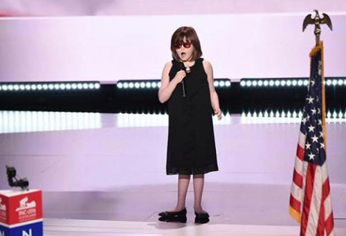 Một cô gái 20 tuổi bị mù bẩm sinh trở thành ngôi sao khi hát quốc ca khai mạc đại hội toàn quốc của đảng Cộng hòa Mỹ.