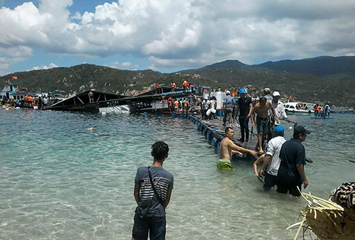 Lãnh đạo tỉnh Ninh Thuận cho biết nguyên nhân khiến nhà hàng nổi sập là tàu chở khoảng 20 du khách đi qua đã va chạm góc phải của bè chở 300 người.