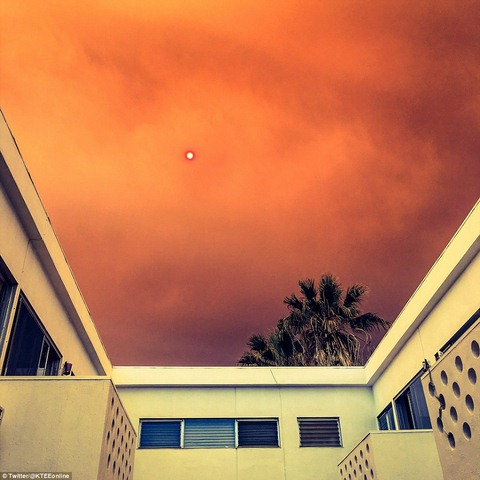 Hai đám cháy dữ dội xảy ra ở bang California từ thứ Bảy (23.7) đã khiến thành phố Los Angeles chẳng khác gì ngày tận thế. Những đám mây đỏ gạch trên bầu trời, sau đó khung cảnh tối thui như mực khiến không ít người sợ hãi tột độ.