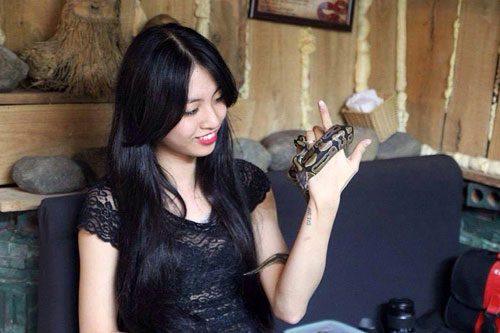 Phạm Huyền Trang (sn 1995), ngoài ngoại hình nhỏ nhắn dễ thương, cô gái này còn nổi tiếng trong giới chơi và nuôi “thú độc” tại Hà Nội và được mọi người đặt cho biệt danh “nữ hoàng bò sát”.