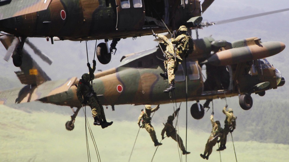 Binh sĩ Nhật Bản tập trận chiếm lĩnh trận địa từ trực thăng