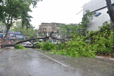 Cây cối nằm ngổn ngang trên nhiều tuyến phố của Thủ đô do ảnh hưởng của bão số 1.