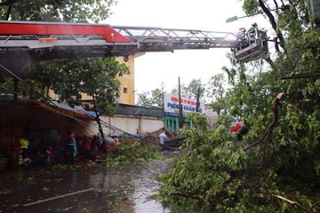 Ghi nhận tại một số tuyến phố như Nguyễn Khánh Toàn (Cầu Giấy), Hai Bà Trưng (Hai Bà Trưng), Mai Dịch (Cầu Giấy),... cây cối nằm ngổn ngang trên đường. Một số khu vực, nhiều mái hiên của nhà dân bị tốc mái; các khu chợ tạm tan hoang vì gió lớn.