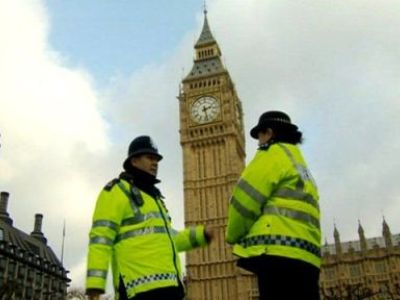 Hai cảnh sát làm nhiệm vụ trước tháp đồng hồ Big Ben