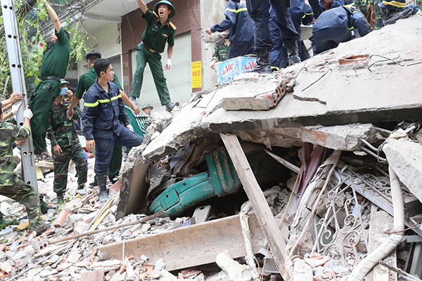 Thoát nạn sau vụ sập nhà, 3 nhân viên cửa hàng đã trở lại hiện trường để giúp lực lượng chức năng xác định vị trí người mắc nạn. Nguyễn Hồng Chiến (18 tuổi, quê Phú Thọ, nhân viên chạy bàn) kể đang nằm trên tầng 2 cùng 2 người nữa. Mọi người đang ngủ rất say, bỗng nghe thấy tiếng rầm, đất trời chao đảo, tối om.