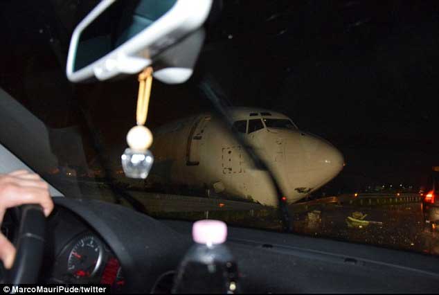 Marco Mauri Pude, một người dùng Twitter đã đăng các tấm ảnh chiếc máy bay khổng lồ nằm vắt qua đường.
