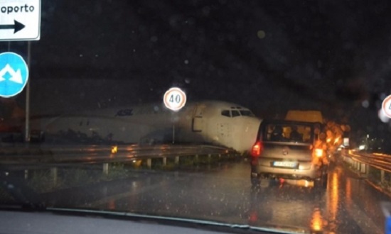 Một phi cơ Boeing 737 chở hàng hạ cánh quá đà, lao ra khỏi đường băng một sân bay ở Italy rồi đâm vào con đường gần đó.