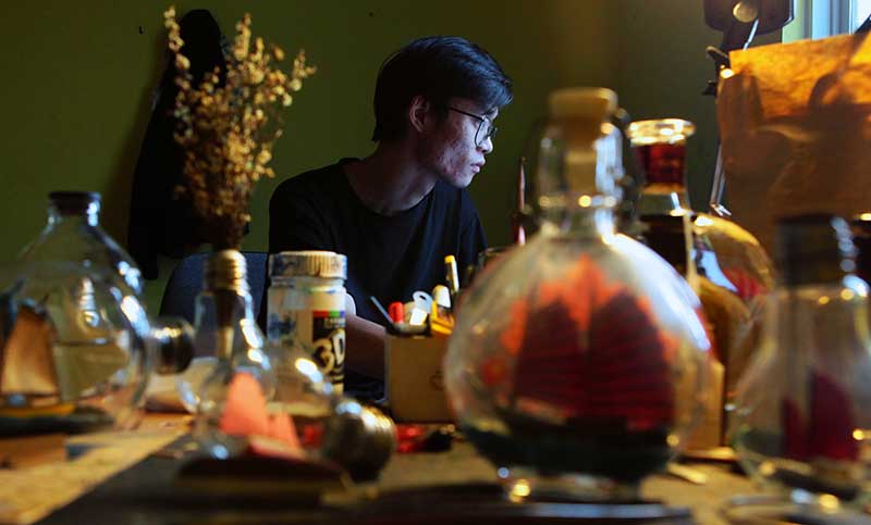 Old  Default 9x Việt tài năng thổi hồn vào những chiếc chai thuỷ tinh và tự lập từ sớm