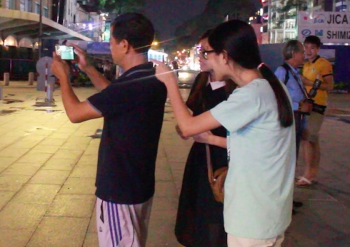 Tại đây một sinh viên năm nhất tại Đại học Tài nguyên và Môi trường TP.HCM cho biết: “Kinh nghiệm của mình là tới những PokeStops để 'thả thính', thu hút Pokemon. Thường thì lên Level cao mới bắt được những con mạnh, giờ mình chỉ đua Level thôi”.