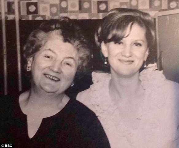 Bà Sue chụp cùng mẹ ḿnh thời c̣n trẻ.